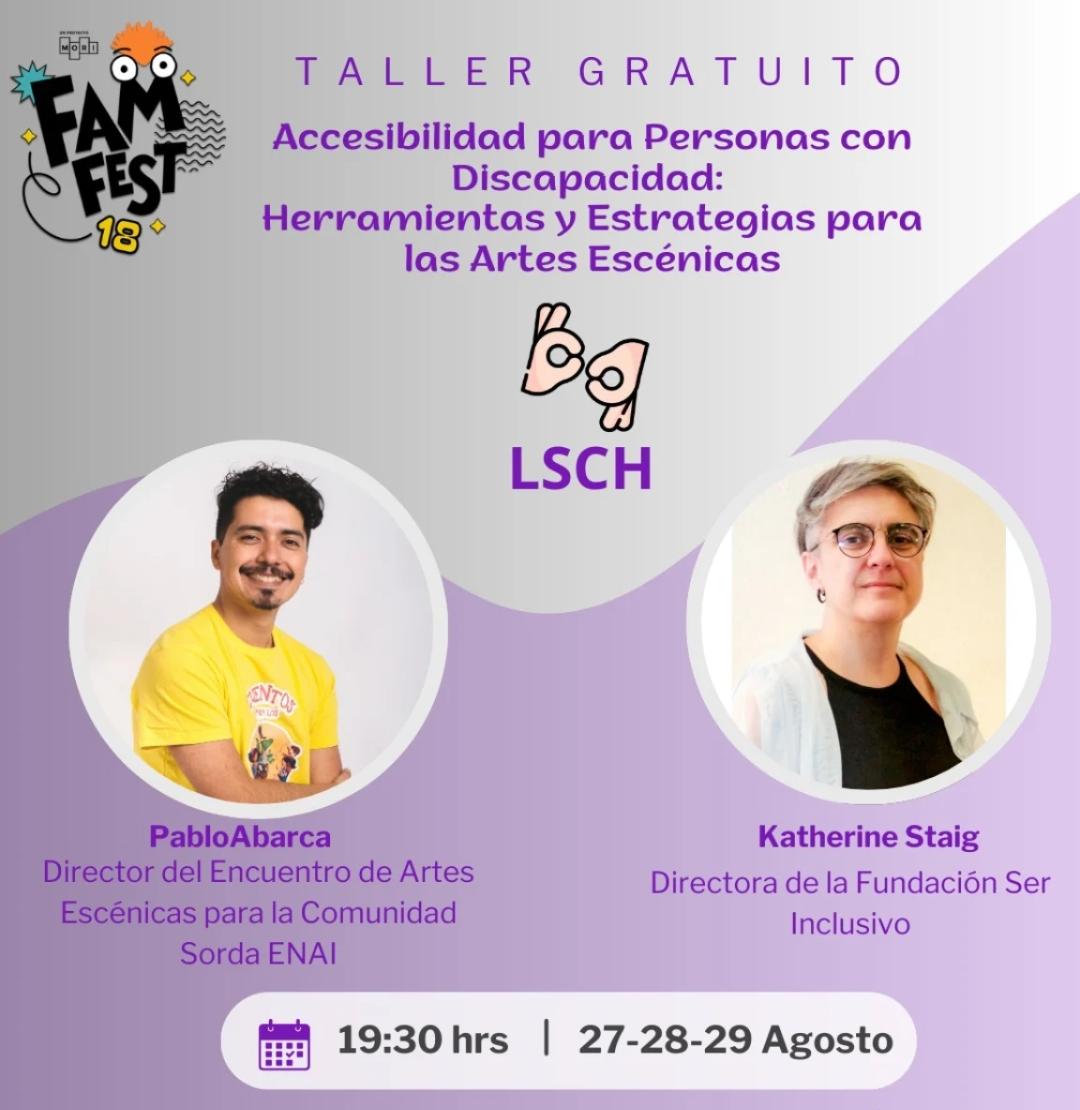 Haberme incorporado a Ser Inclusivo siendo una actriz con discapacidad auditiva, fue una tremenda oportunidad para poner en práctica mis estudios. Tenía temor de que sería difícil para mí insertarme en el medio ya que no veía referentes en el medio artístico que tuvieran una discapacidad como la mía. Pensaba que no había campo laboral.La invitación a trabajar en Ser Inclusivo rompió esta inseguridad que yo tenía y me doy cuenta que hay personas trabajando en arte, cultura y accesibilidad y no solo con un enfoque en los espacios, sino también en las personas, en incluír profesionales con discapacidad y para mí eso fue muy importante.